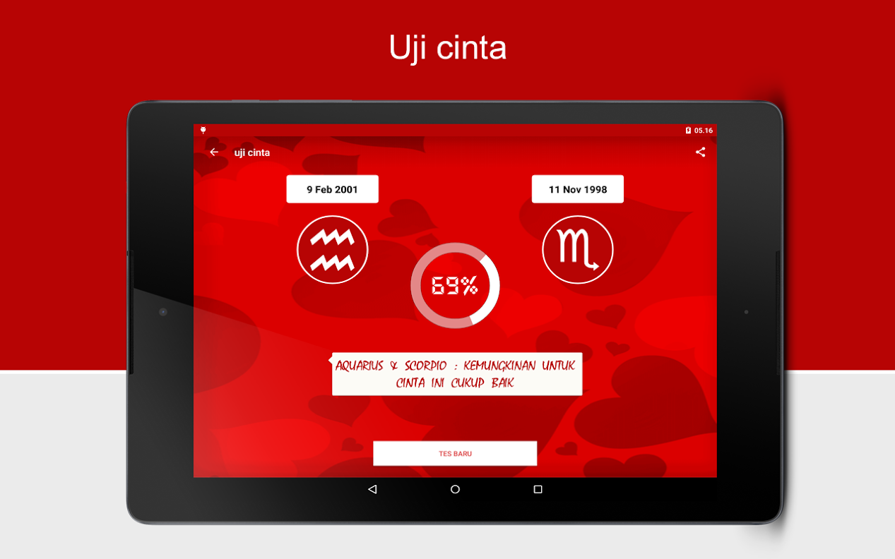 Selamat mencoba semoga mendapatkan hasil terbaik, sayangnya hasil yang ditampilkan hanya mengada-ngada berdasarkan perghitungan komputer. Kalau kamu suka nyatakan saja, tak usah ragu, lebih baik baca artikel tentang relationship di blog ini.